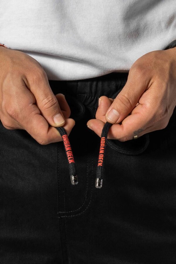 • Acabamento Pro: A Calça Cargo Street 6 Bolsos possui cordão robusto com estampa em vermelho, ponteiras metálicas e patch bordado.